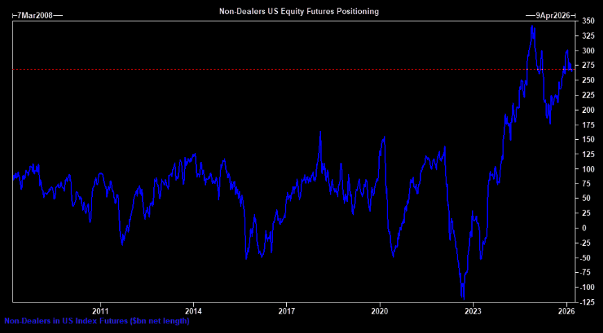Non-dealers are running rather large US equity futures longs.