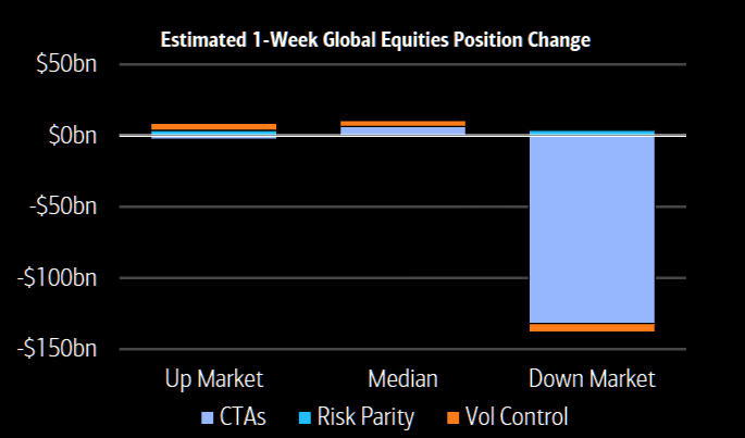 BofA: "Systematic strategies could sell $134bn in a down market, buy $9bn if markets are flat, and buy $6bn in an up market."