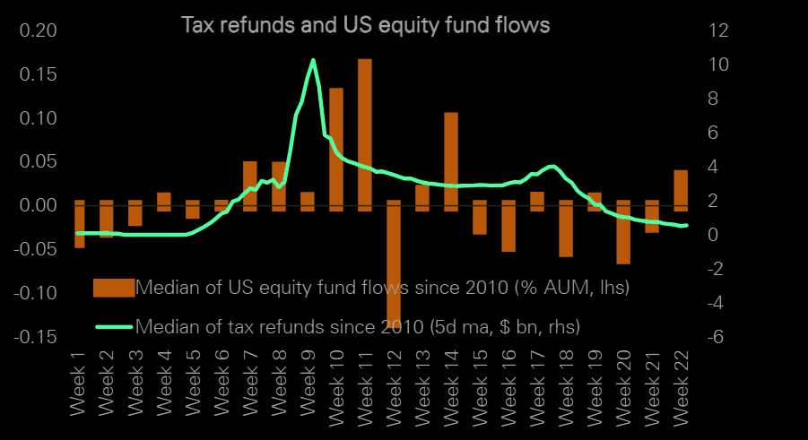 Tax refund season sees a significant pick up in US equity fund inflows.