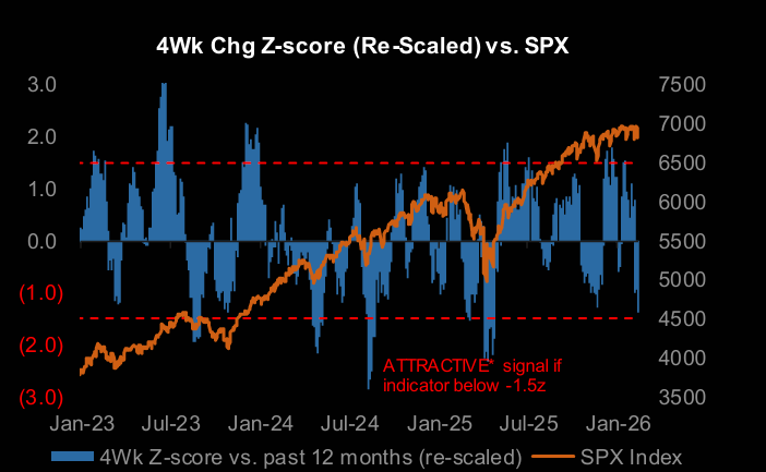 Systematic strategies positioning (0.48sd, 67th percentile) also declined this week. This is the lowest percentile we have seen in a while.