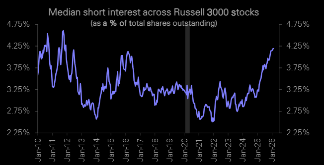 Median cash shorts taken as % of shares outstanding for the Russell 3000.
