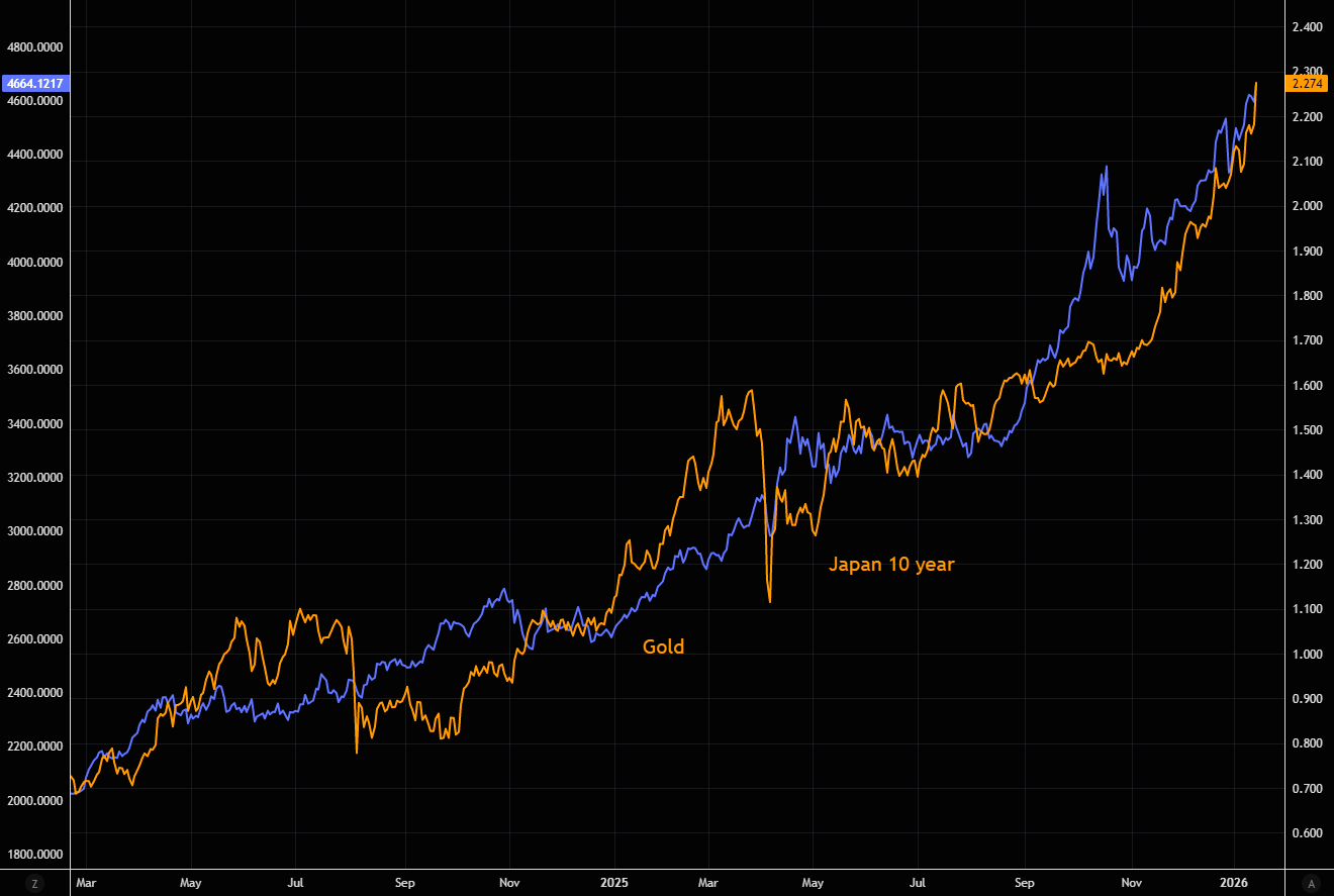 Perfection prevails as gold and the Japanese 10 year move in lockstep.