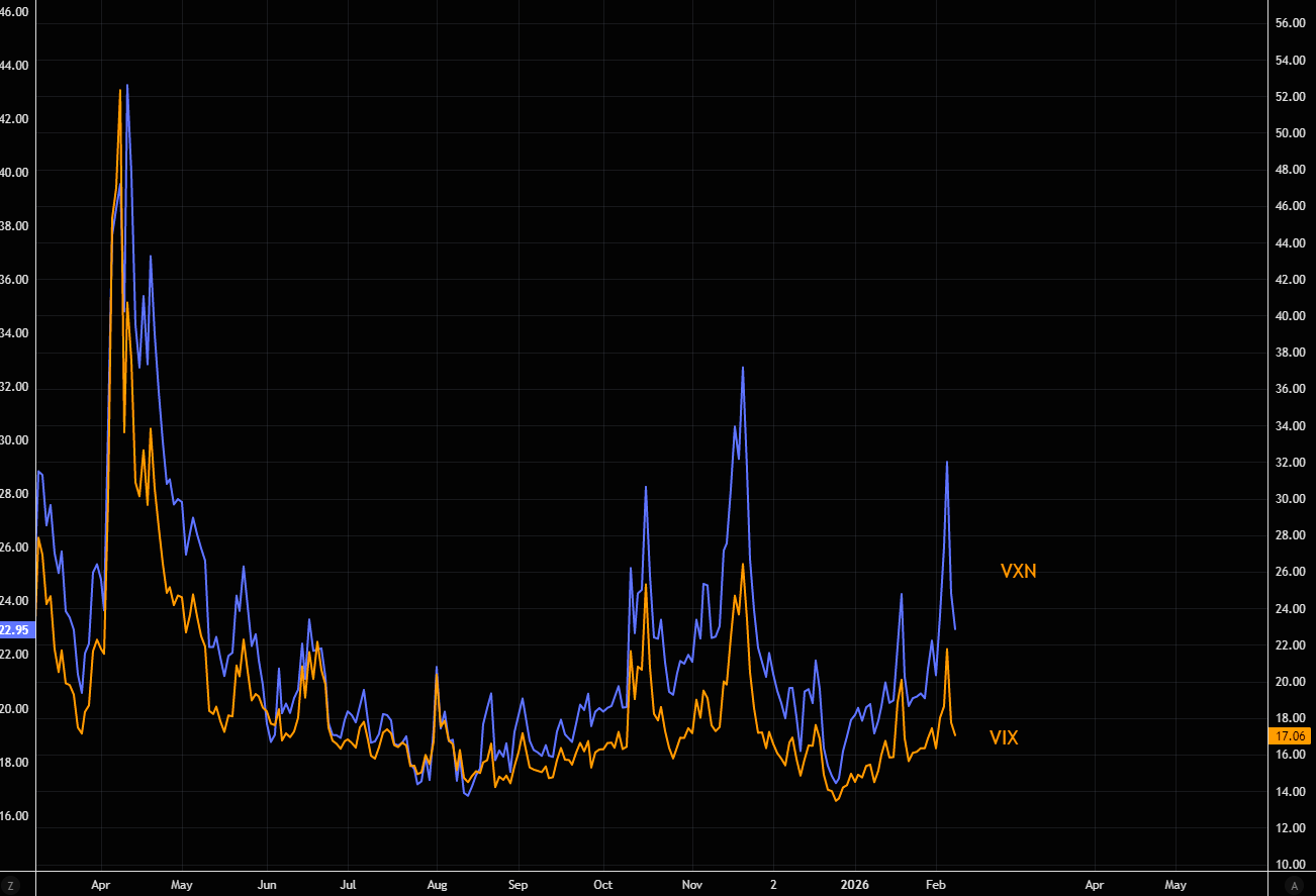 The VXN vs VIX overshoot has been rather "impressive". Chart 2 shows the VXN vs VIX ratio.