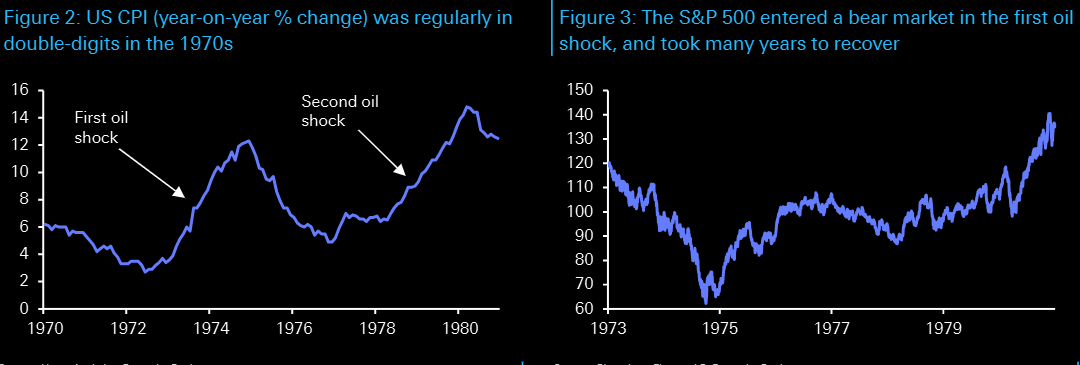 2. Economic shock: Energy-intensive Western economies were hit hard; the S&P 500 fell over 40% and the US recession lasted 16 months (1973–75).