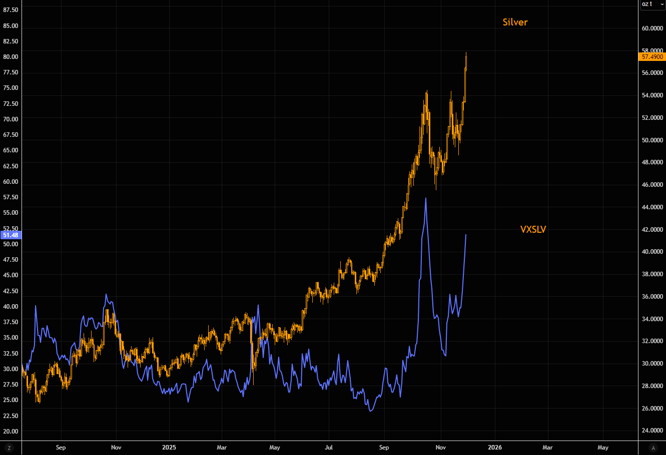 Silver volatility exploding further as the panic to buy upside exposure goes extreme. Full silver note here.