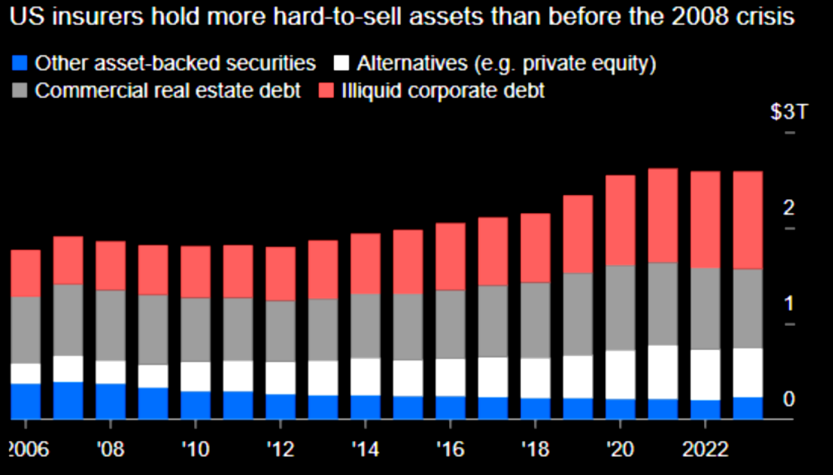 Life insurers now hold $2.5T in illiquid assets (37% of total):